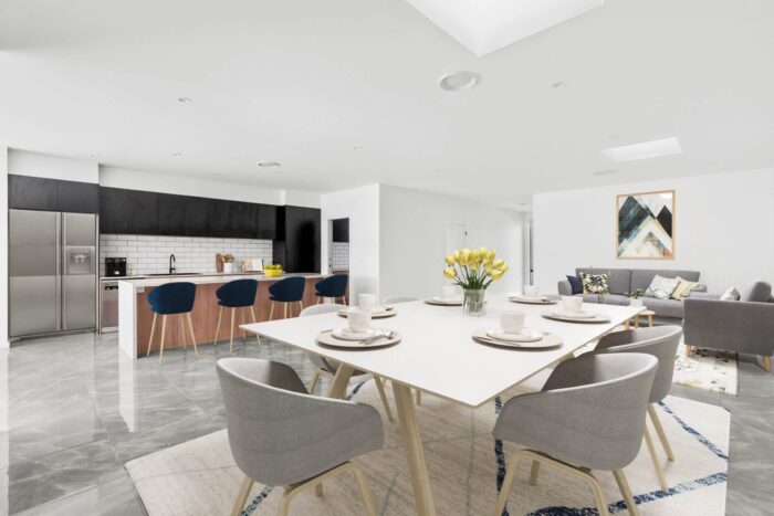 The dwellings were designed to enhance liveability and value, incorporating high ceilings, skylights, and open-plan living spaces. The architectural façade features Enseam metal cladding, Corten metal hoods, and skillion roof forms, creating a distinctive and cohesive streetscape.
